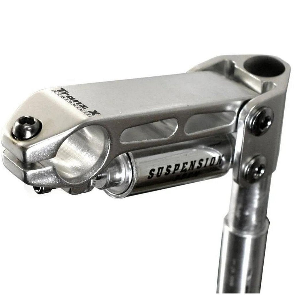Mesa Tranz X Components 115mm com Suspensão, capaz de proporcionar um melhor desempenho, segurança e conforto em sua bike, mesa muito utilizada na prática de ciclismo de estrada, cicloturismo, XC e até MTB leve.